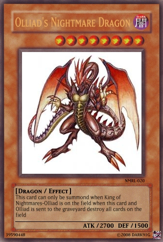 TrickyPooBoy Posted December 7, 2008 Report Share Posted December 7, 2008 You need work on your cards. Ummm... there is this thing called punctuation, bro.Also, "attack" in cards is called "ATK" and "defense", "DEF". Sorry, you need work! Link to comment Share on other sites More sharing options...