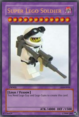 jbizzle53 Posted December 20, 2008 Report Share Posted December 20, 2008 Please reply.Super Lego Soldier is a bit too high in ATK and DEF Link to comment Share on other sites More sharing options...