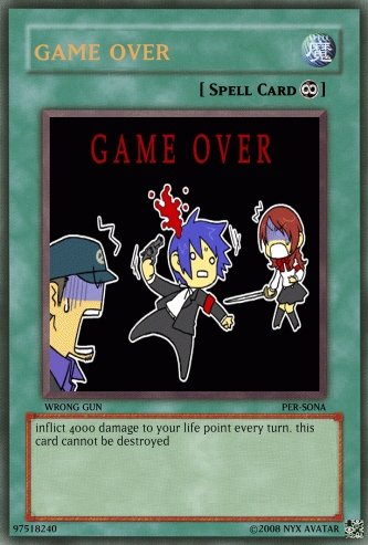 Kryuzei Posted September 14, 2007 Author Report Share Posted September 14, 2007 Nyu ~ New cards. Effect : This card cannot be Normal Summoned/Set. This card can only be special summoned by the effect of 'The Arcana - Aeon" Spell Card. As long as this card remain Face-Up on the field, you can negate the effect of Spell/Trap Cards on the field. Once per turn, if this card would be destroyed as a result of battle, it is not destroyed. (Damage calculation is applied normally). Link to comment Share on other sites More sharing options...