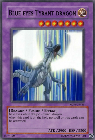 Lolz Dialgaz Posted February 4, 2009 Report Share Posted February 4, 2009 here is my entry: (click to enlarge)effect/fusionblue eyes white dragon +tyrant dragonwhile this card is on the field no spell or trap cards can be activated. Link to comment Share on other sites More sharing options...