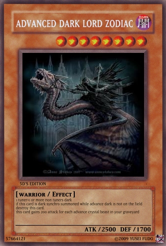 Neo Fugario Posted February 7, 2009 Report Share Posted February 7, 2009 heres the card i want made in to a dark synchro soz its in an attachment my computer spazed up I think you might want to change its type into "Dark Synchro / Warrior" first.Then I will take this order. Link to comment Share on other sites More sharing options...