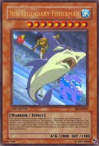 Dragon11 6 Posted February 6, 2009 Report Share Posted February 6, 2009 I made this because i own "the legendary fisherman" but found him lacking some useful abilities. this really should be a card i think. His effect is: This monster cannont be normal summoned or set. This monster can only be special summoned by tributing one face-up "The Legendary Fisherman" on your side of the field. This monster cannot be selected as an attack target. While "Umi" is face up on the field this card is uneffected by spell or trap cards. Discard one card from your hand to negate the effect of one of your opponent's card that designates this monster as the target of a spell, trap, or monster effect and destroy it. Link to comment Share on other sites More sharing options...