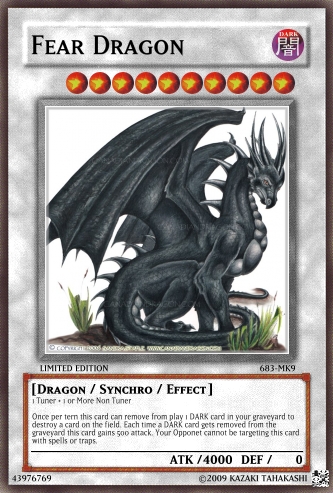 rofl banshee Posted February 20, 2009 Report Share Posted February 20, 2009 BEHOLD! MY FIRST CARD!!!! 1 Tuner + 1 or More Non Tuner Once per tern this card can remove from play 1 DARK card in your graveyard to destroy a card on the field. Each time a DARK card gets removed from the graveyard this card gains 500 attack. Your Opponet cannot be targeting this card with spells or traps. Link to comment Share on other sites More sharing options...